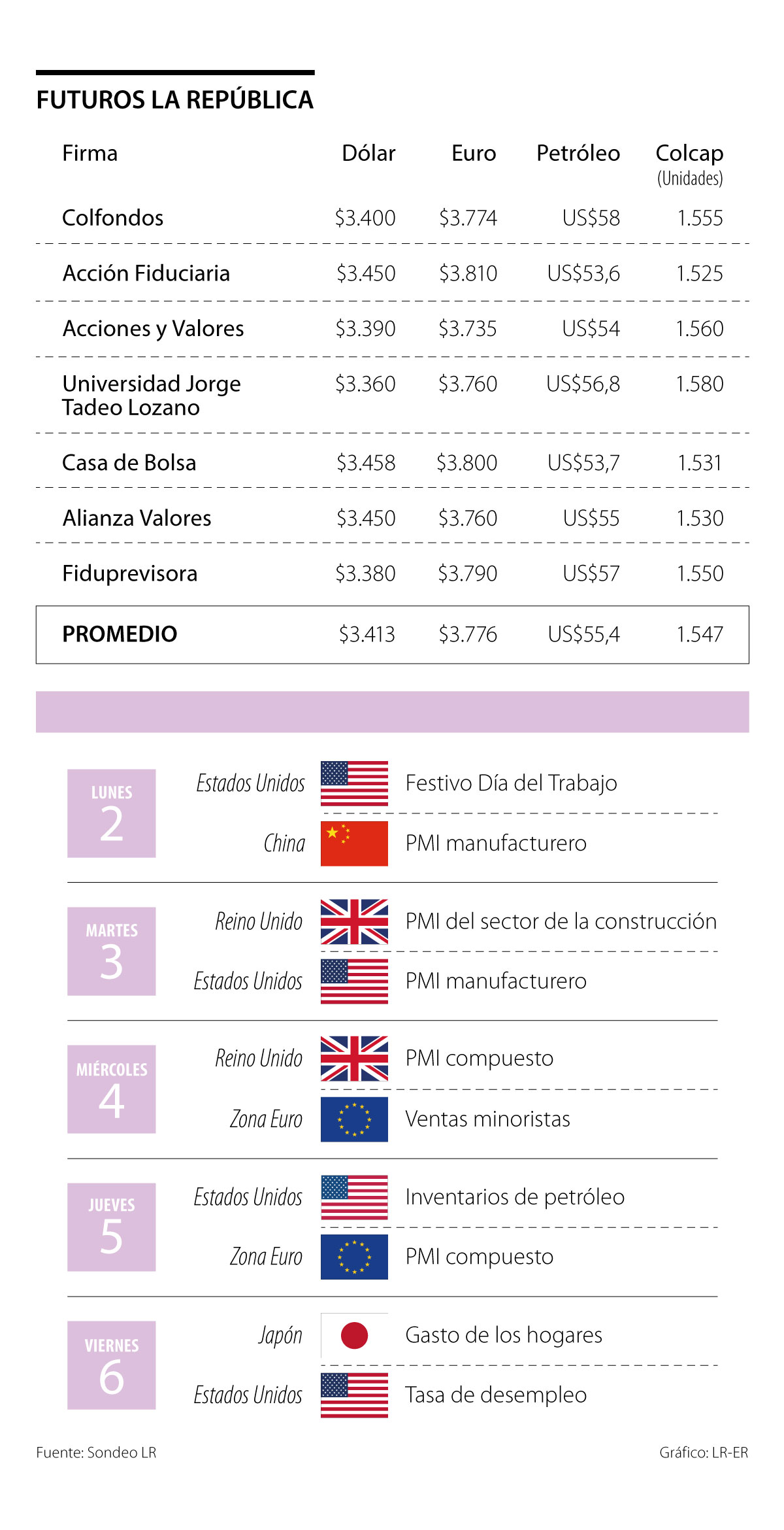 De acuerdo con los analistas de siete entidades consultadas por LR, la moneda llegará durante la primera semana de septiembre a un precio promedio de $3.413, lo que representa una disminución leve frente a su precio promedio de cierre de agosto, de $3.427,3.
