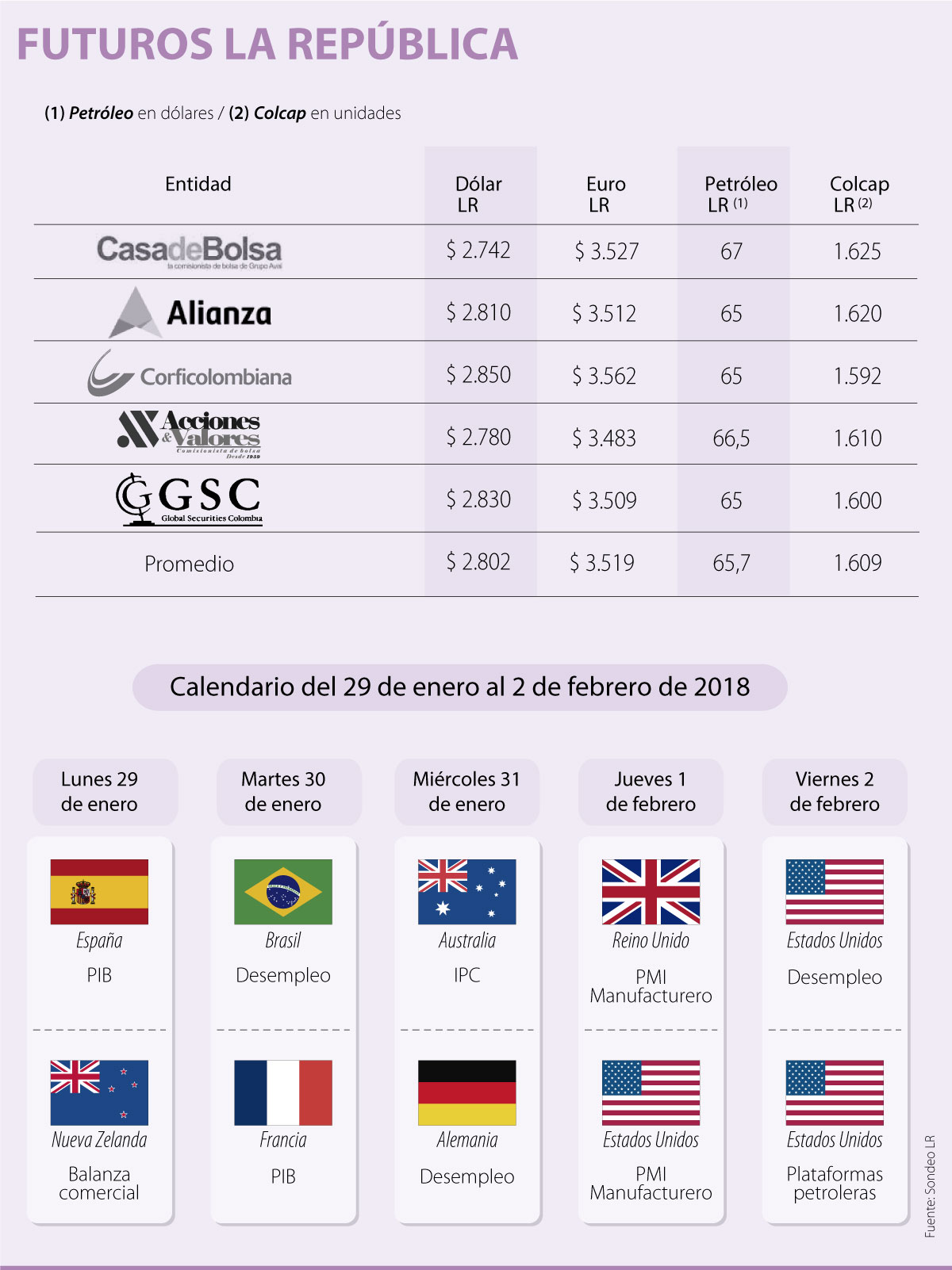 Por el lado del mercado de valores local, hoy las empresas empezarán la entrega de resultados financieros de 2017, lo cual puede llevar al índice Colcap de la BVC a las 1.600 unidades, de acuerdo con Natalia Granados, analista de Global Securities.