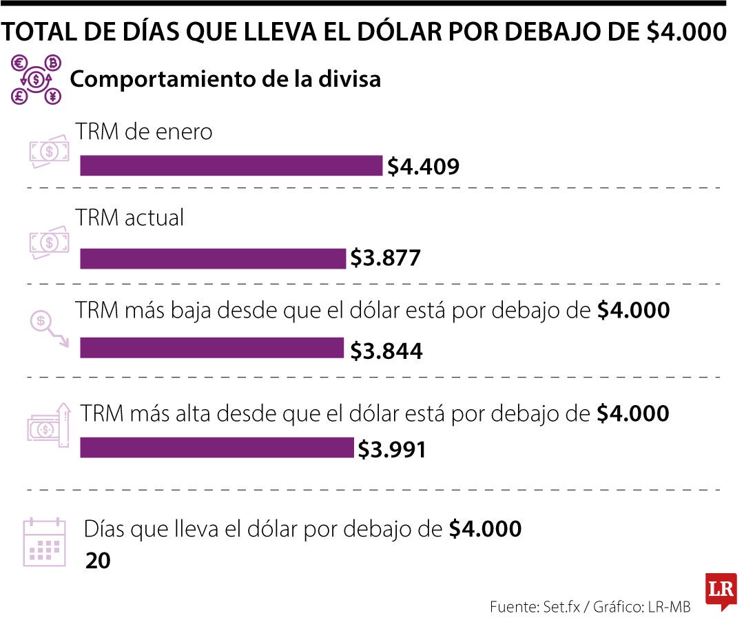 Faltando un trimestre para terminar el año y esperando la avalancha de remesas característica de los noviembres, el dólar completó 21 sesiones a la baja, un fenómeno que en septiembre se ha intensificado mucho más. Hasta el cierre de esta edición, el dólar perdió $119,54 desde la TRM del primero de este mes, que cotizó en un promedio de $4.018,41.