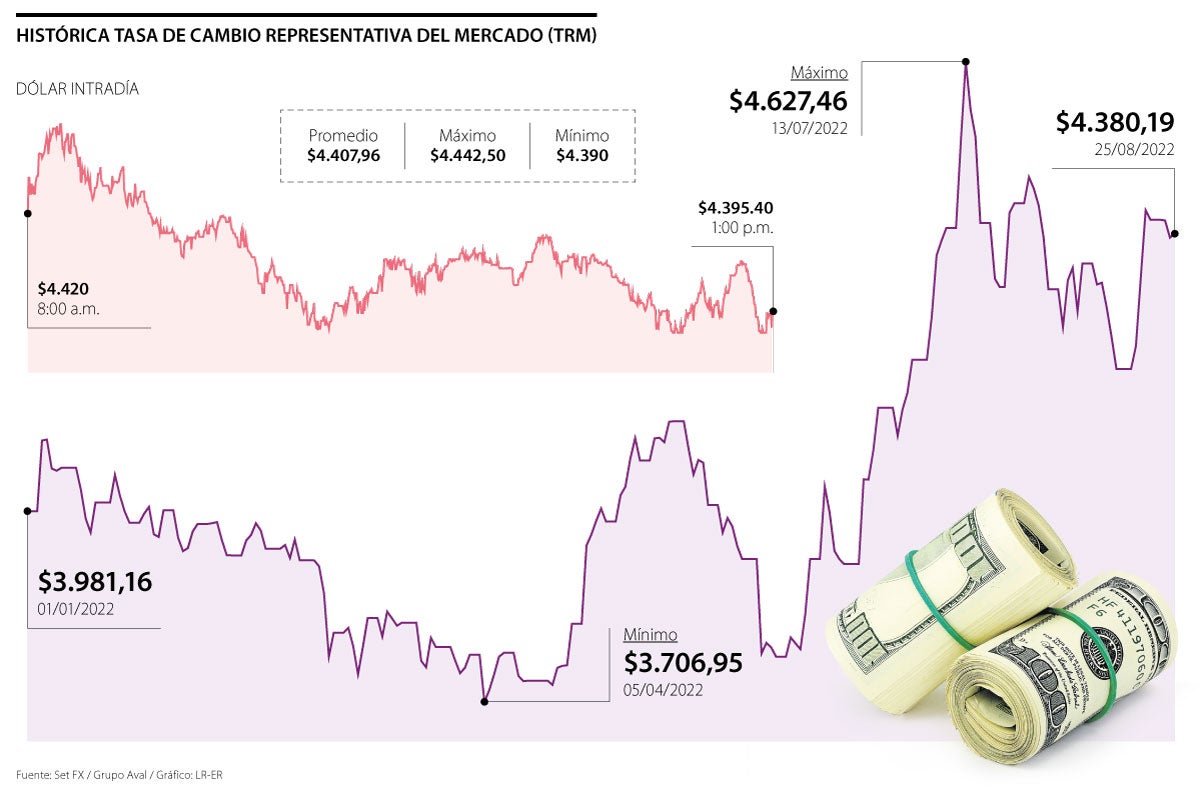 “La estimación de tasa de cambio para el final de 2022 que tenemos en el Grupo Bancolombia es de $4.180 por dólar, es una tasa que de acuerdo con nuestro análisis, digamos, compensa, fuerzas encontradas que están afectando el mercado cambiario, por un lado los factores alcistas asociados a la incertidumbre tanto a nivel global como local y la posibilidad de una desaceleración fuerte de la economía internacional”, dijo Juan Pablo Espinosa de investigaciones económicas de Bancolombia.
