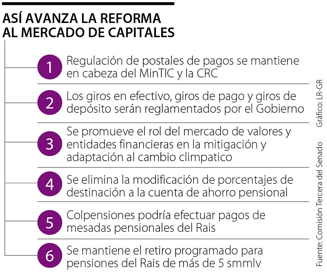 Dentro del proyecto que pasó a segundo debate, se eliminó el artículo que modificaba los porcentajes de destinación a la cuenta de ahorro individual, gastos administrativos y las primas de los seguros de invalidez y sobrevivientes de los ahorradores del Régimen de Ahorro Individual con Solidaridad (Rais).