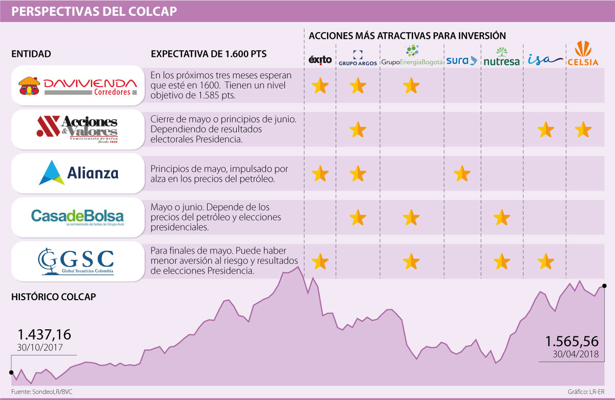 Camilo Thomas, analista de Alianza Valores, señala que “en el corto plazo vemos para inicios de mayo que se pudiera ubicar en 1.600 unidades. Hay que tener en cuenta el respaldo del tema petrolero que siga fortaleciendo el mercado. El 12 de mayo es clave para saber qué pasa con esas acciones dependiendo de las decisiones de Trump y si continúa o no el acuerdo de la Opep”.