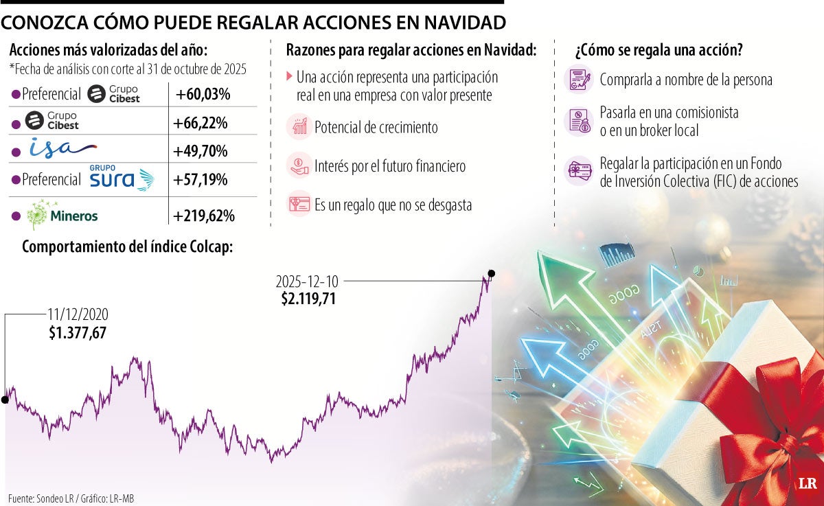Si está pensando en comprar acciones para dar como regalo de Navidad, sepa que, según los analistas, este obsequio es más viable que cualquier otro presente, ya que no se desgasta con el tiempo, se valoriza con el pasar de los meses y refleja un interés por el futuro financiero de los seres queridos.
