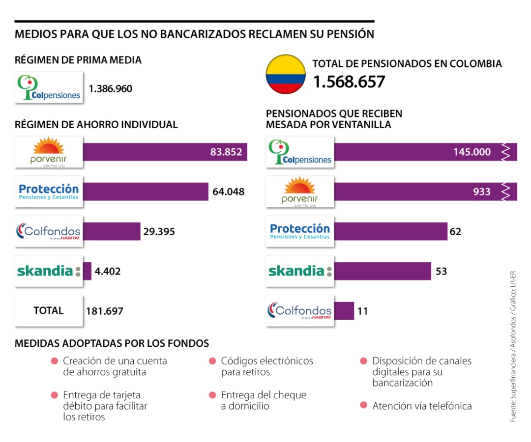 En cuanto al Régimen de Ahorro Individual, Porvenir es la administradora privada con más pensionados no bancarizados (933) que reciben su mesada pensional de manera presencial. A las oficinas del fondo se acercan 253 personas y por ventanilla en bancos 680 más.