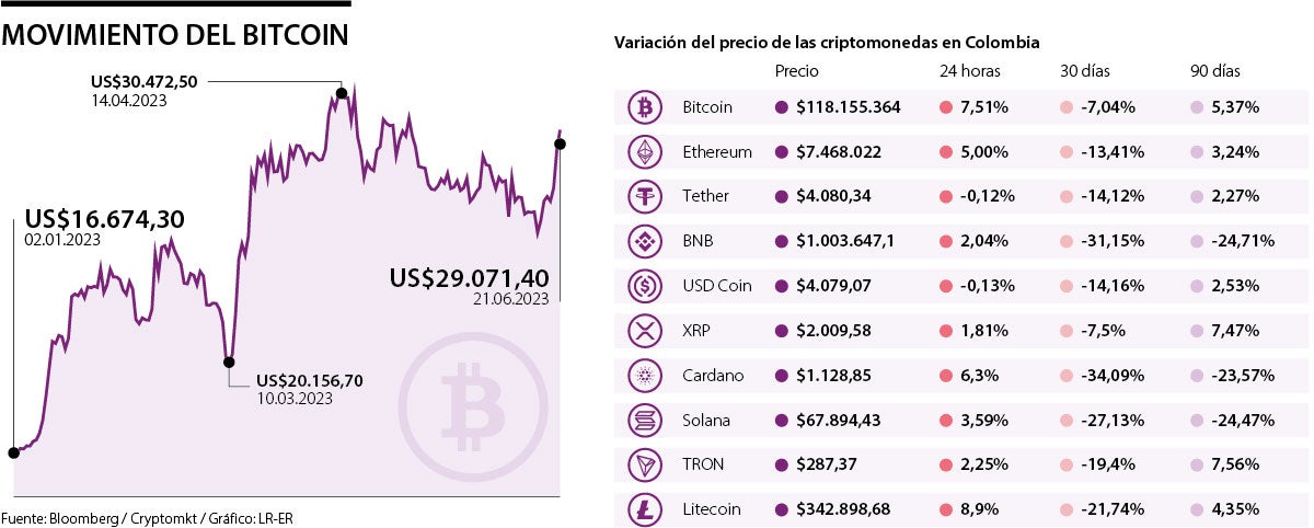 Si una persona hoy tuviera 10.000 bitcoins no compraría solo dos platos de pizza, tendría US$289 millones para adquirir cientos de tiendas de Papa John's en el mundo. Pero para llegar a una valorización tan alta, la principal criptomoneda del mundo ha pasado por un curva de más de una década, de hecho solo en 2011 un bitcoin logró costar US$1. Ahora la divisa se ha mantenido lo corrido de junio entre US$28.000 y casi US$30.000.