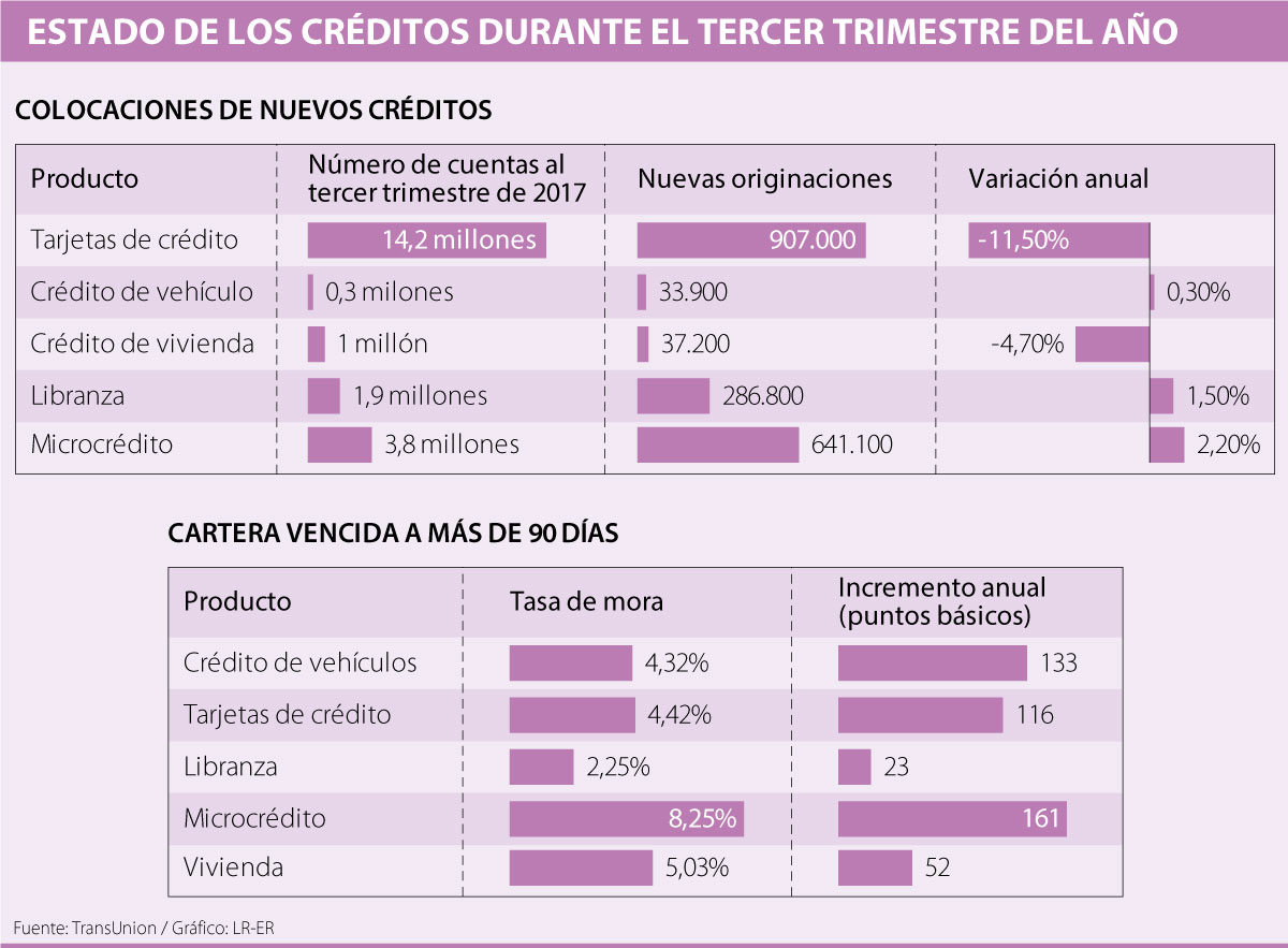 La compañía de análisis financiero TransUnion entregó los resultados sobre el comportamiento del crédito en Colombia durante el tercer trimestre del año. Una de las primeras conclusiones es que en todos los segmentos de deuda estudiados creció el nivel de morosidad a más de 90 días.