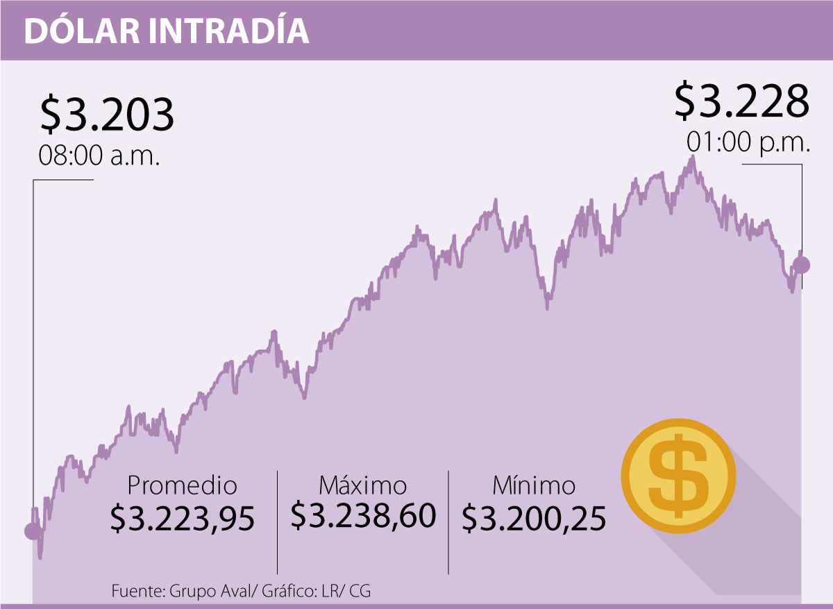 Este movimiento impulsó que el dólar abriera en $3.203 y cerrara en $3.228. En la sesión el valor más bajo que registró fue de tan solo $3.200,25 y el pico más fuerte llegó a $3.238,60.