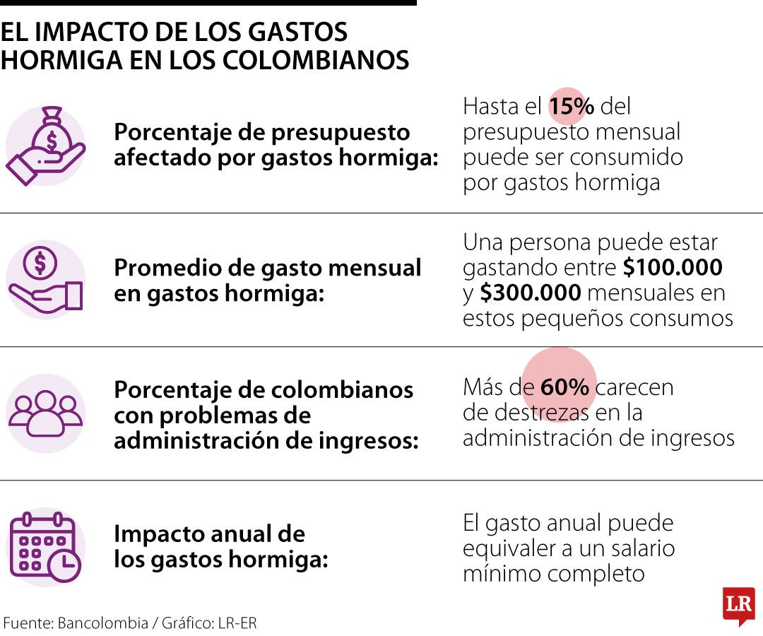 Según datos de Bancolombia, en promedio una persona podría estar gastando entre $100.000 y $300.000 mensuales en gastos hormiga sin darse cuenta. Esto equivale a casi un salario mínimo completo al año.
