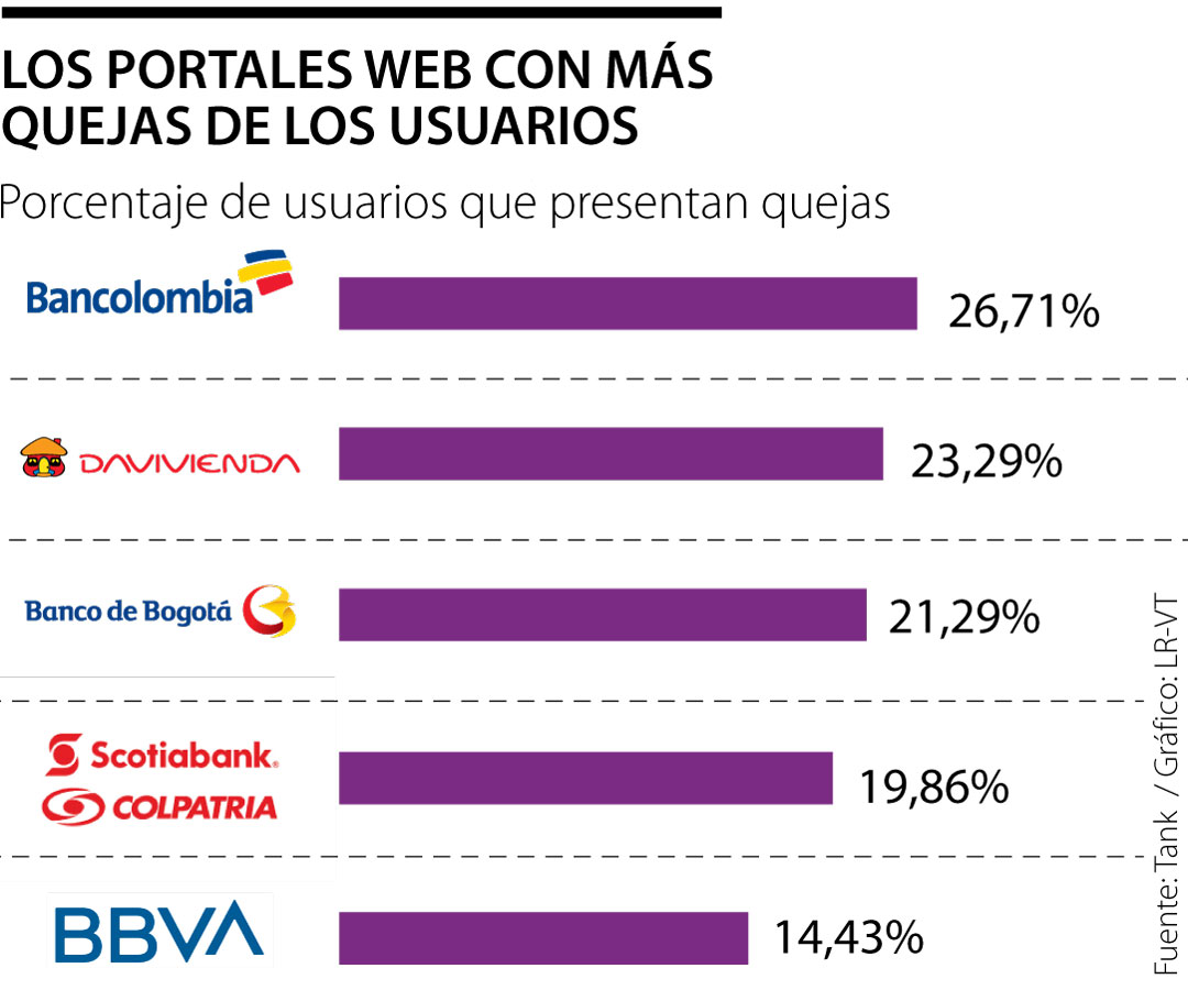 En ella, la compañía preguntó: ¿con cuál plataforma ha tenido algún tipo de problema al realizar transacciones digitales? Aunque la Dirección de Impuestos y Aduanas Nacionales (Dian) y Claro obtuvieron los primeros lugares del ranking general, entre los resultados estuvieron entidades del sector financiero. En esa categoría, Bancolombia fue citado por 26,71% de los encuestados; Davivienda por 23,29%; Banco de Bogotá por 21,29%; Scotiabank por 19,86%; y Bbva por 14,43%.