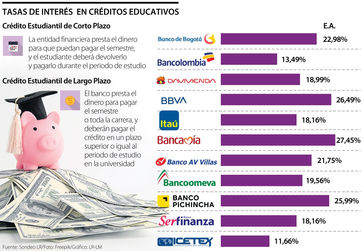 Diversos análisis muestran que quienes cuentan con mayor educación son menos propensos a caer en el desempleo o en la informalidad. Por eso, una de las metas más comunes de los colombianos consiste en fortalecer su nivel educativo y, para ello, solicitan alguna línea de crédito en el banco de su preferencia. LR realizó un sondeo con las principales entidades financieras del país, con el fin de plasmar las tasas de interés para 2022 en este segmento.