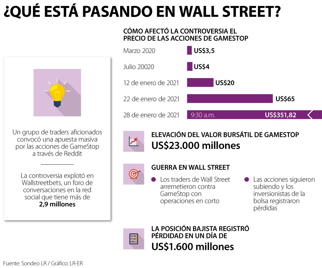 Fue rápidamente que a través de WallStreetBets (WSB), un foro de conversaciones en Reddit, una red social de 2,9 millones de usuarios dedicado a las apuestas en bolsa, GameStop se convirtió en tendencia. Es donde la especulación sobre las acciones de la minorista de entretenimiento impulsó la compra y a su vez el precio del activo.