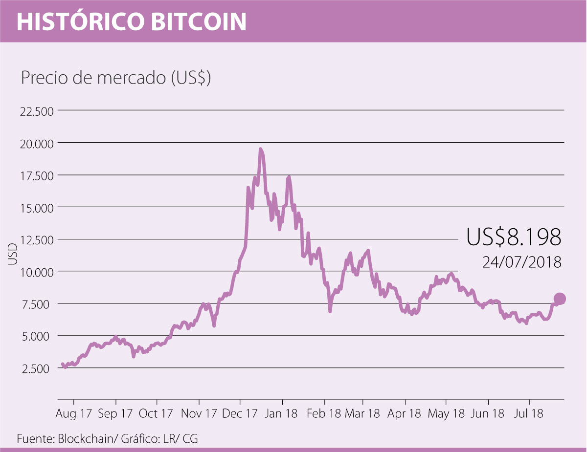 El Bitcoin, la criptomoneda más utilizada en el mundo, subió este martes a más de US$8.300 en la sesión, logrando su nivel más alto en los últimos dos meses; la cifra no se alcanzaba desde el 20 de mayo cuando alcanzó US$8.386 al cierre.