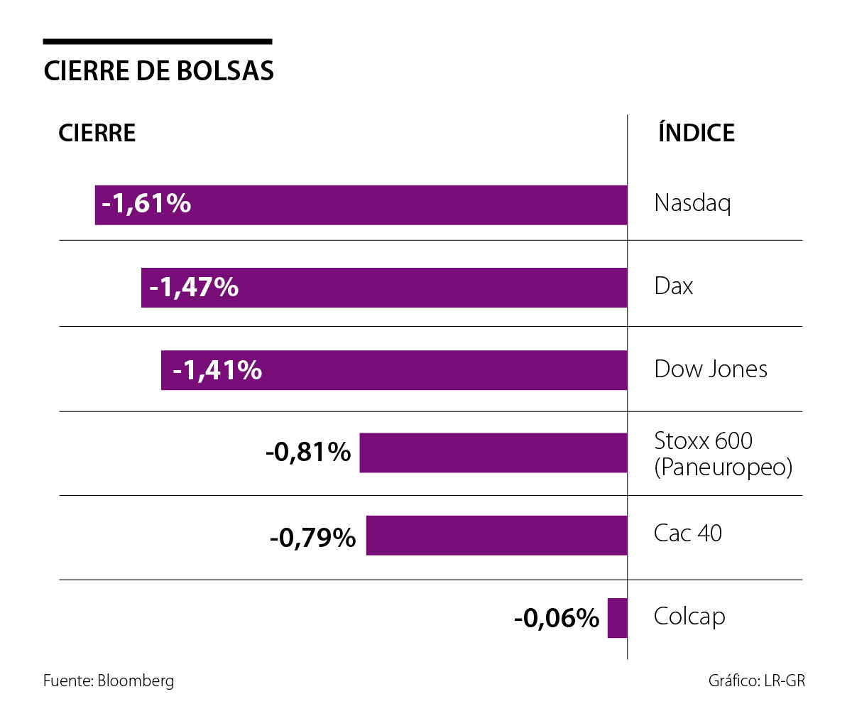 Este hecho se suma a las caídas que la tensión entre el país norteamericano y China mantienen, con lo que el índice Dow Jones perdió 1,41% de su valor mientras que el Nasdaq se desvalorizó 1,61%.