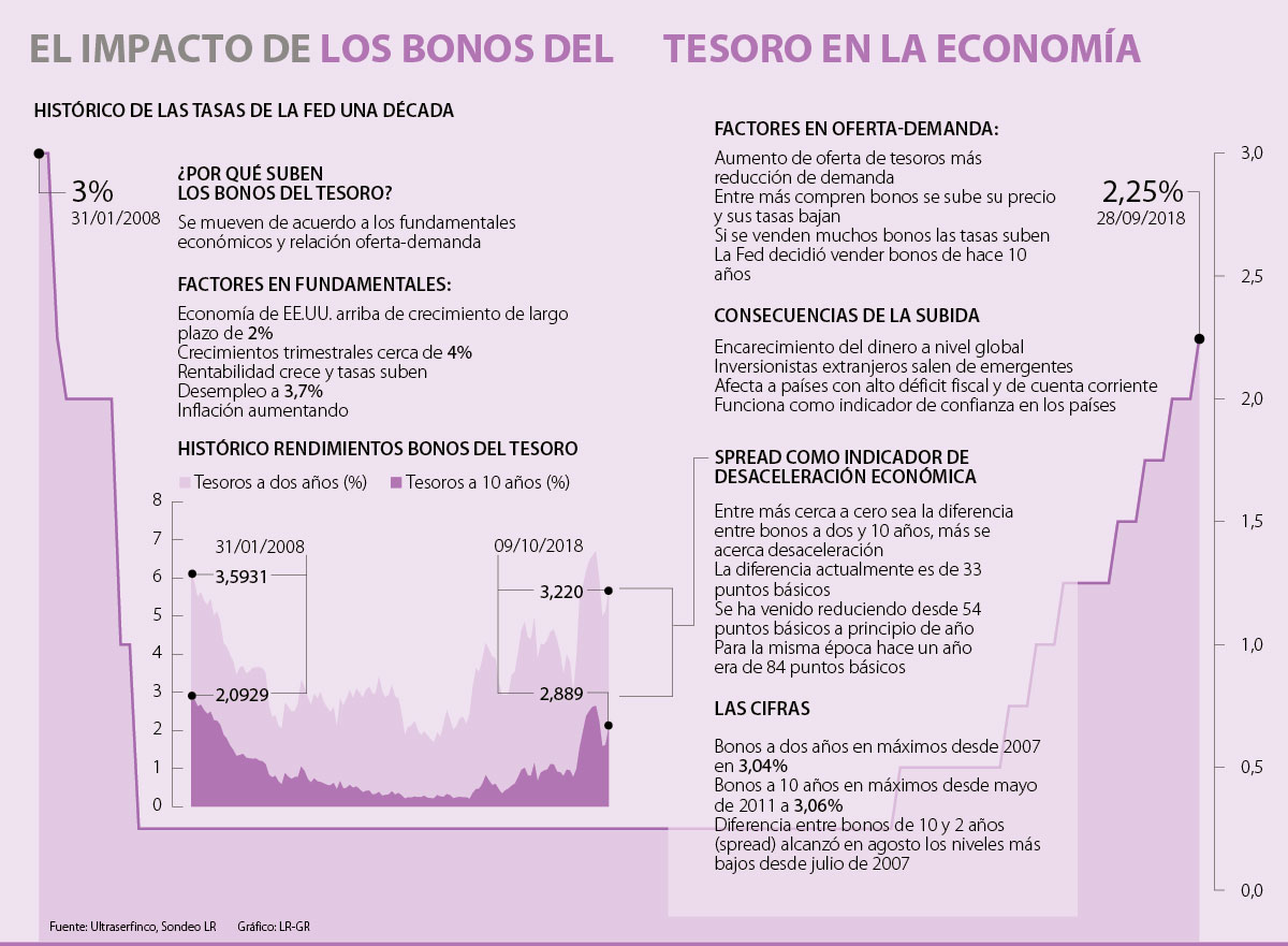 “Al menos 50% de la deuda pública de Estados Unidos está concentrada en bonos a dos años, es decir de muy corto plazo. Ahora que estas tasas se han subido la rentabilidad es positiva, mientras que en los años anteriores había sido negativa, es por esto que tienen que salir a colocar más deuda para pagar la anterior”, explicó Diego Camacho, director de investigaciones de Ultraserfinco.