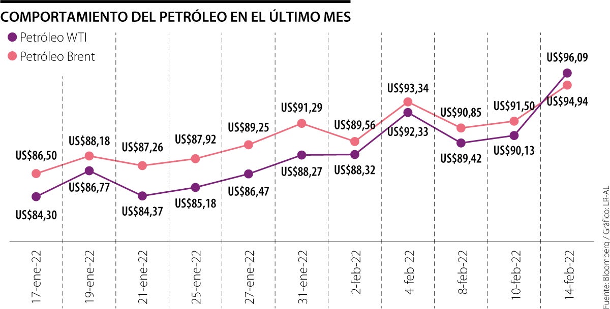 Recientemente, Bank of America estimó que el Brent alcanzaría los US$120 por barril para finales de junio de este año, pero no solo por los riesgos políticos en el continente asiático que hoy mueven al mundo, sino por el aumento de la demanda global a medida que las economías se recuperan de la pandemia. Asimismo, algunos miembros de la Organización de Países Productores de Petróleo y sus aliados (Opep+) están bajos de cuota, por lo que la evolución del precio de dicha materia prima también dependerá de los recortes de producción, o de si sancionan a Rusia con la no comercialización de la misma en caso de que ejecute su plan militar.