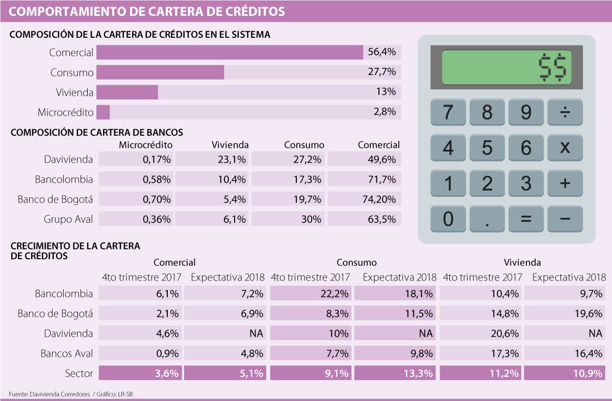 Para tener un panorama del efecto que tiene este crecimiento en el sector, se debe tener en cuenta que a diciembre de 2017 la cartera de créditos estuvo compuesta 54,7% los préstamos comerciales. Así, que la mejora, después de cerrar 2017 con una baja de 0,76%, significará un alivio para las entidades.