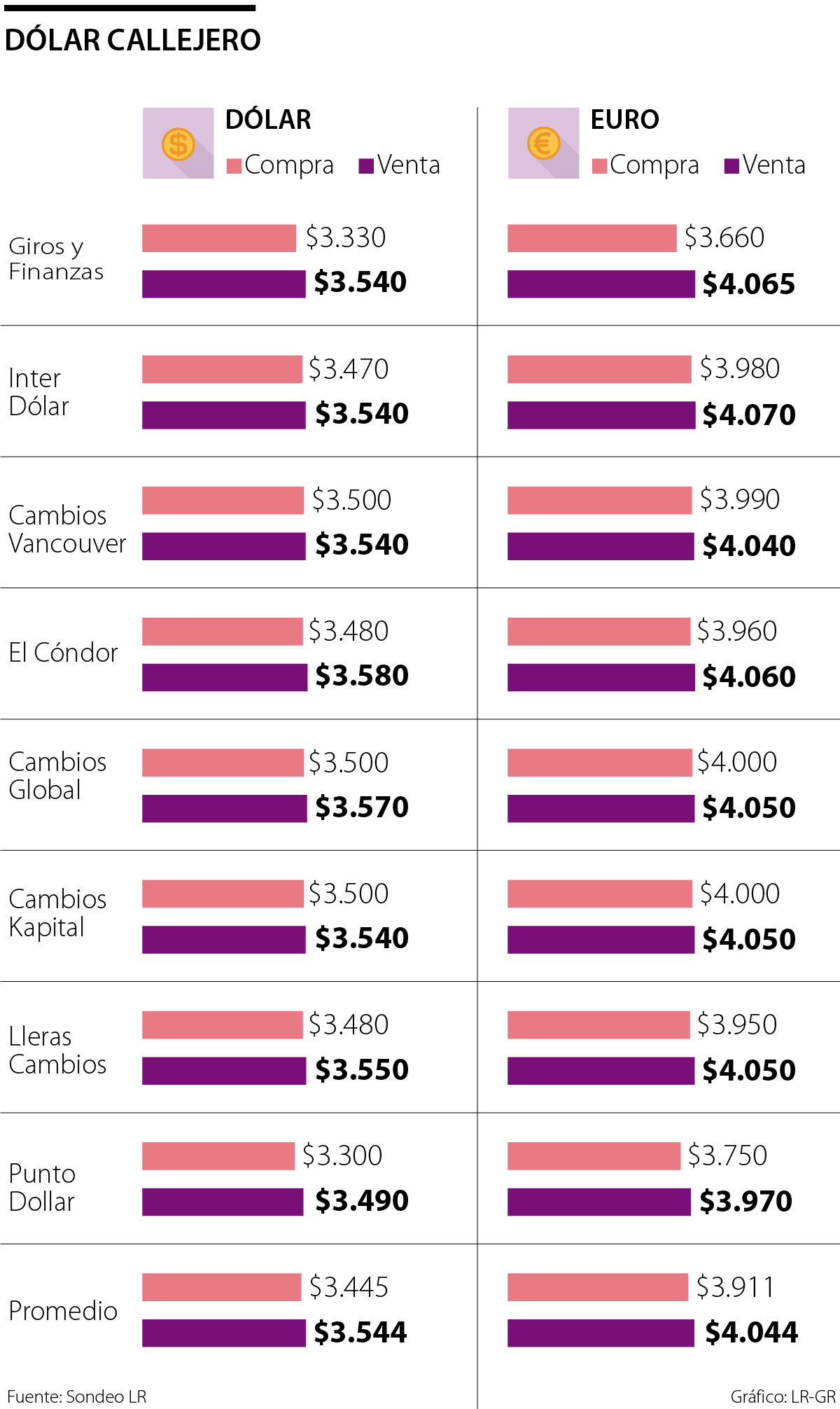 El euro está $449 más barato en las casas de cambio frente a su tasa oficial, que para la última jornada se ubicó en $4.493,66. Si está interesado en adquirir esta divisa, los precios de venta más baratos están en Punto Dollar ($3.970) y Cambios Vancouver ($4.040). En contraste, los valores más elevados están en Inter Dólar ($4.070) y Giros y Finanzas ($4.065). Recuerde que los precios varían si desea comprar o vender billetes de 100 o 500 euros, ya que este mercado funciona a través de un mecanismo de oferta y demanda de los usuarios. Los billetes grandes, que son más escasos, tienen un precio mayor.