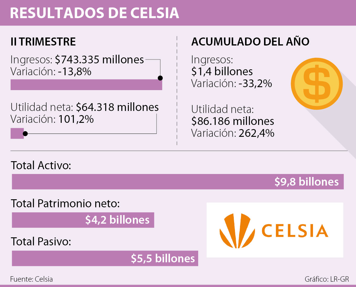 En el segundo trimestre, Celsia continuó con la tendencia de caída en ingresos y aumento en las utilidades. La empresa facturó $743.335 millones durante este periodo, lo cual representó un descenso de 13,8%; aún así, su utilidad neta alcanzó los $64.318 millones, que implica un crecimiento de 101,2% con respecto al mismo trimestre de 2016.