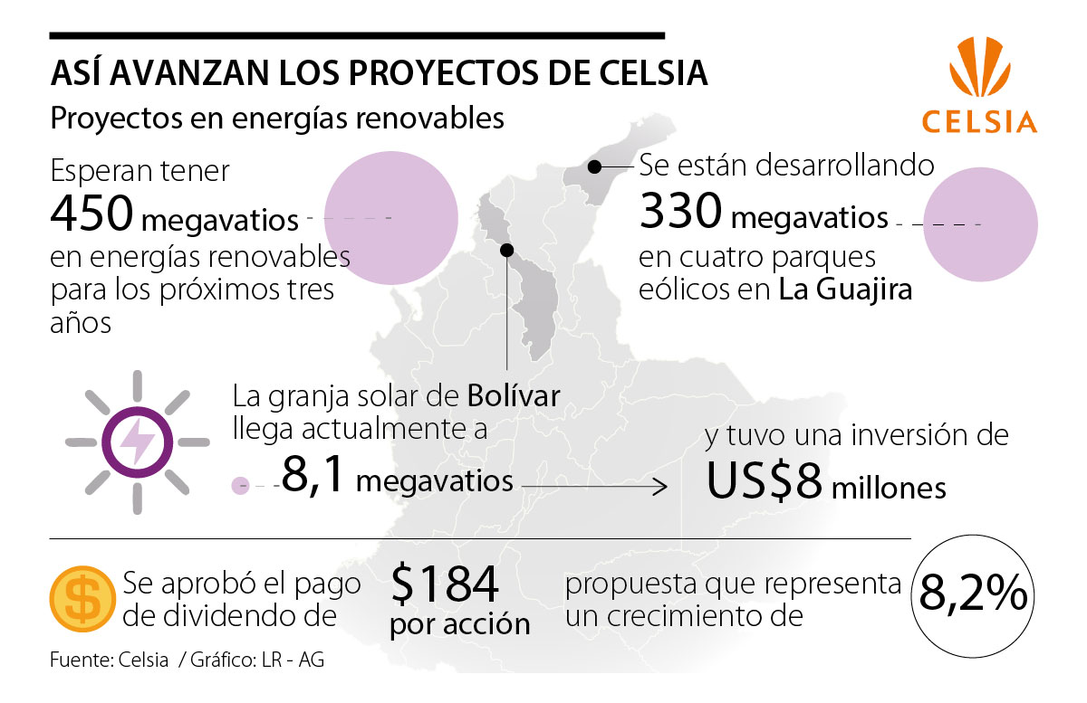 Durante la asamblea de accionistas de la compañía energética Celsia, celebrada ayer, se aprobó el pago de un dividendo por acción de $184 un alza de 8,2% frente al año anterior, según destacó el presidente de la firma, Ricardo Sierra.