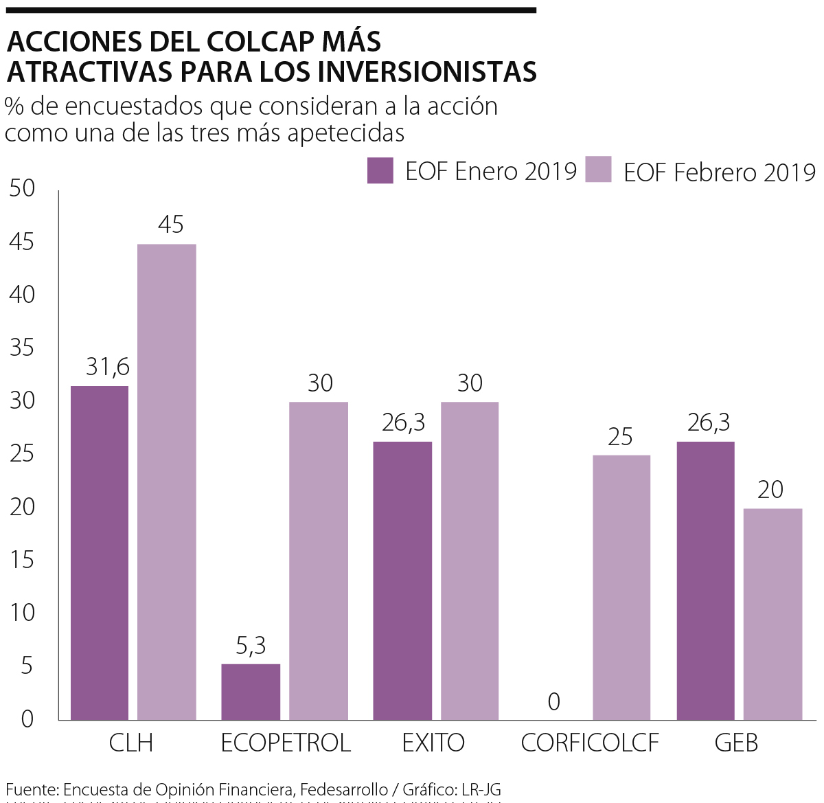 Esto ha hecho que los inversionistas vuelvan a mirar con buenos ojos la renta variable local, en la que según la Encuesta de Opinión Financiera correspondiente a febrero, realizada por Fedesarrollo, las acciones de Cemex Latam Holdings, Ecopetrol y Éxito son las más apetecidas en el índice Colcap.