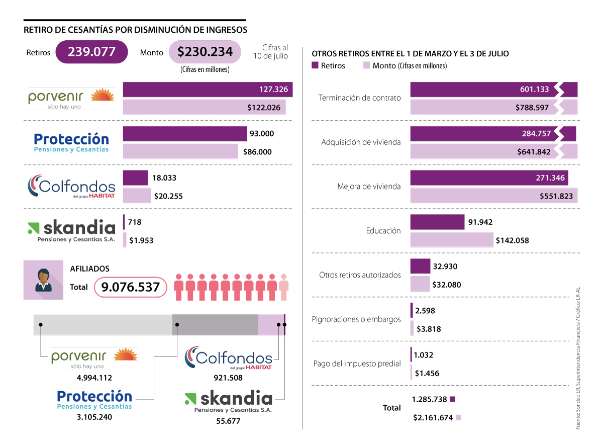 Al 10 de julio, 239.077 afiliados a Porvenir, Protección, Colfondos y Skandia accedieron a $230.234 millones del total de sus ahorros