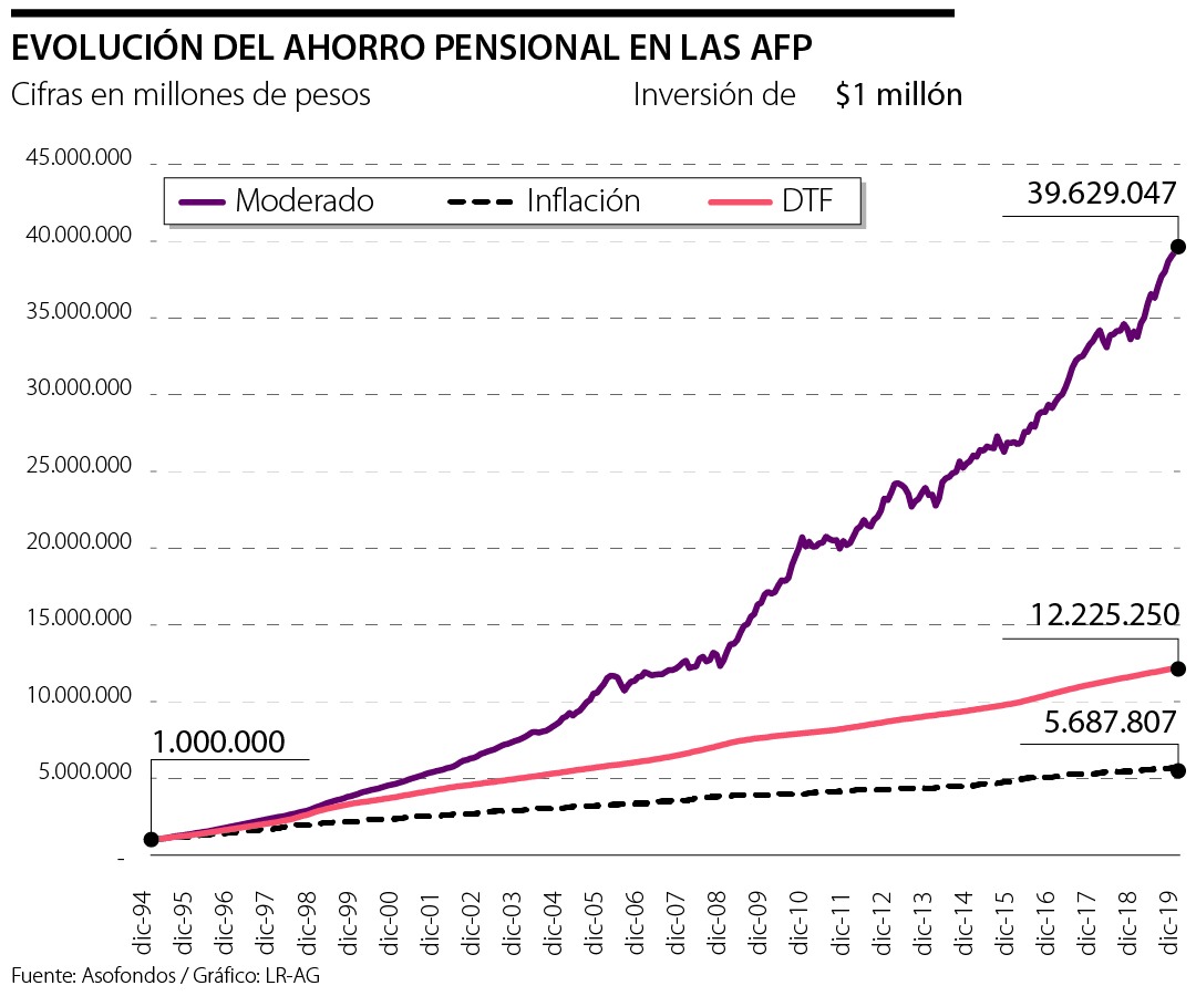 Según información de la Asociación Colombiana de Administradoras de Fondos de Pensiones y Cesantías (Asofondos), gremio que agrupa a las administradoras Porvenir, Colfondos, Protección y Skandia, durante 2019 se registraron ganancias por cerca de $40 billones y el ahorro pensional llegó a $281,7 billones.