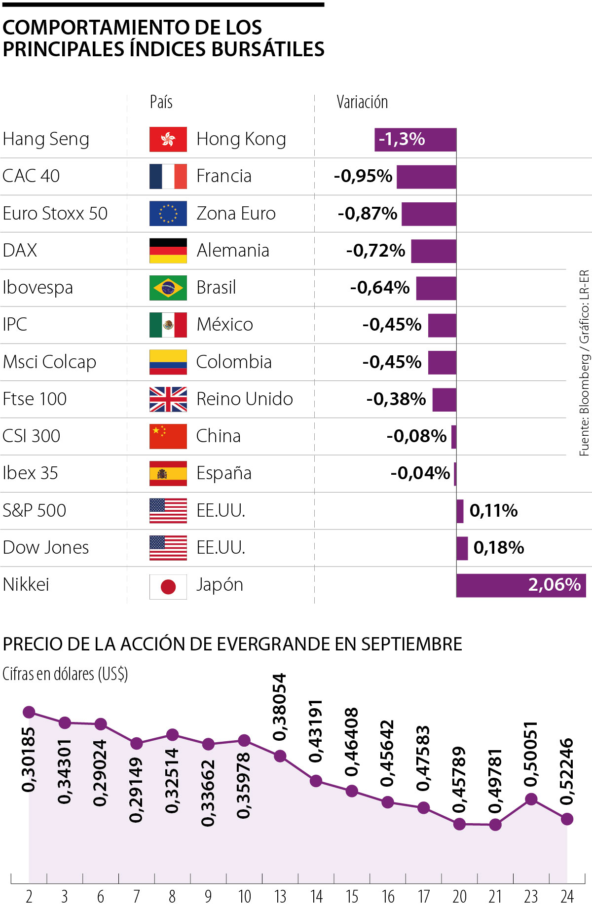 “Al entrar en un posible incumplimiento de deuda, la caída de China Evergrande podría contagiar al resto del sector de construcción y frenar la recuperación de la economía china”, explicó Londoño.