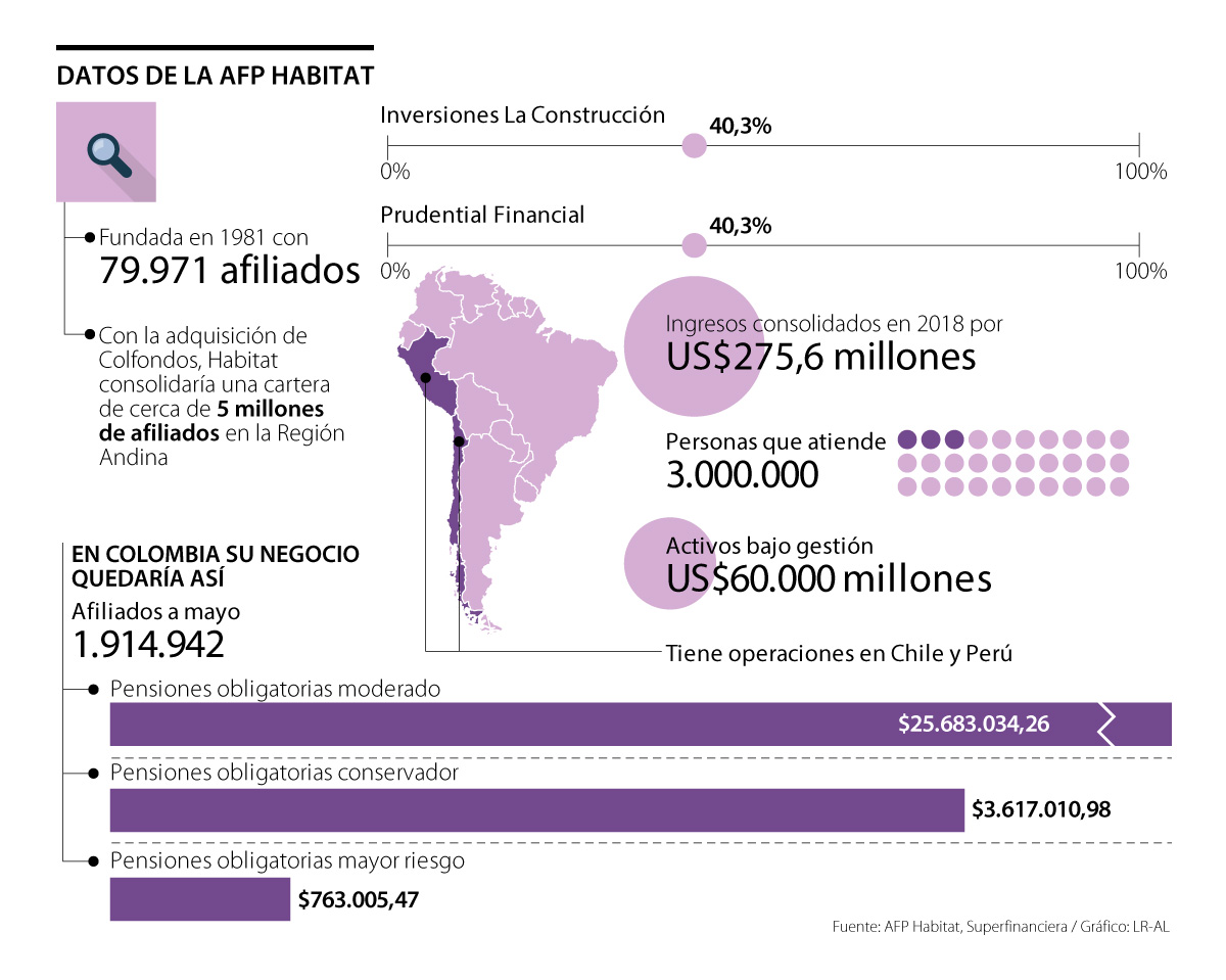 Cristián Rodríguez, presidente de AFP Habitat Chile le señaló a medios de comunicación de ese país, que de darse la adquisición consolidarán una cartera de cerca de 5 millones de afiliados en la Región Andina. A lo que se sumarían más de $30 billones administrados en pensiones obligatorias distribuidas en tres portafolios, más lo administrado en pensiones voluntarias y en cesantías, que suman activos por cerca de $1,5 billones en el acumulado entre enero y mayo de 2019, en los portafolios de corto y mediano plazo, según la Superfinanciera.
