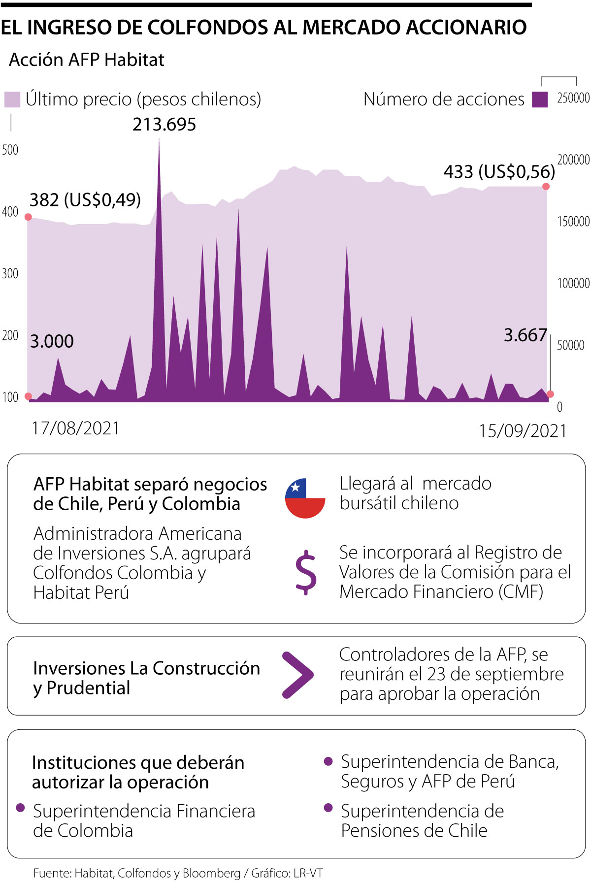 Dicha operación estará sujeta a la autorización de los accionistas de Inversiones La Construcción y Prudential, controladores de la administradora, quienes se reunirán el próximo 23 de septiembre en junta extraordinaria. Adicionalmente, la Superintendencia de Banca, Seguros y AFP de Perú, la Superintendencia de Pensiones de Chile y la Superintendencia Financiera de Colombia tendrán que dar luz verde a dicha transacción.