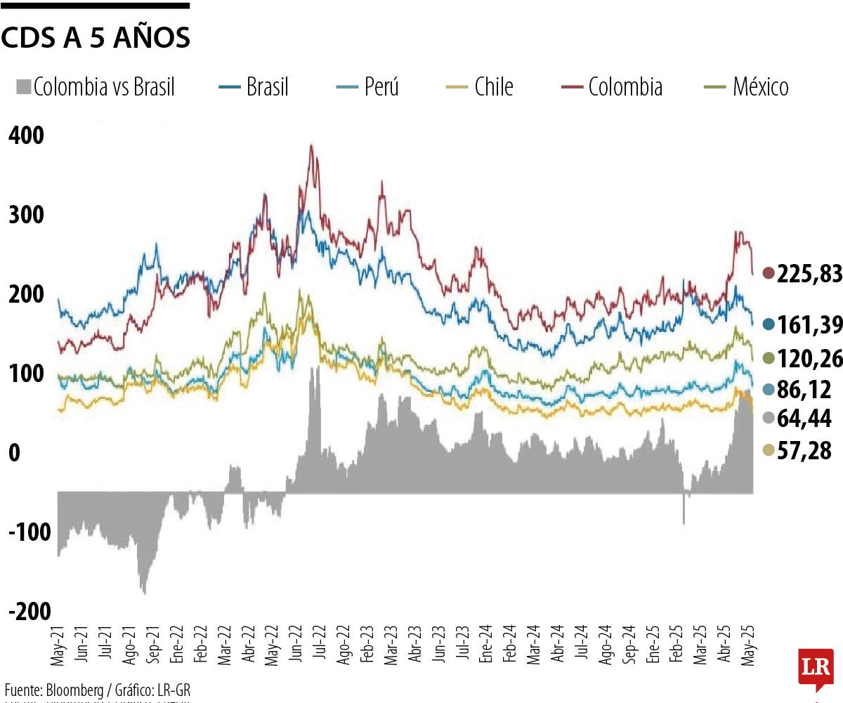Países como Uruguay y Chile se ubican entre los de menor riesgo, con spreads inferiores a 1,5%, lo que refleja una percepción más favorable de sus economías. Brasil y México, por su parte, también mantienen spreads más estables y bajos en comparación con Colombia.