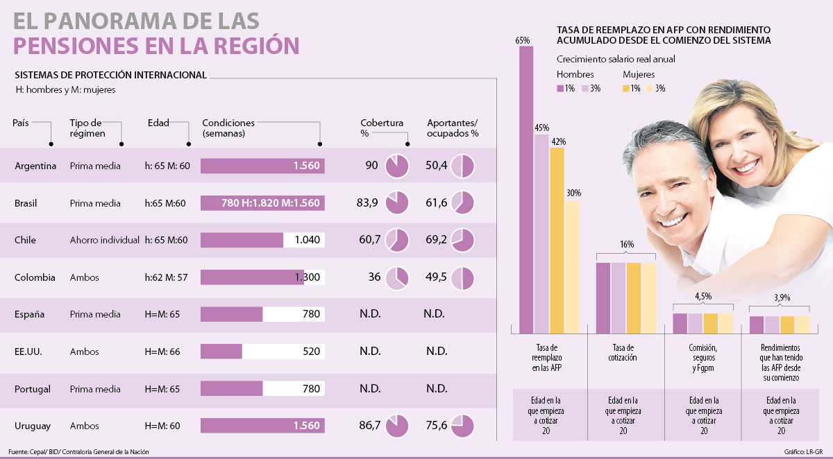 Sin embargo, para el director de la oficina Cepal Colombia, Juan Carlos Ramírez, el país tiene una particularidad ya que “tenemos una muy baja cobertura de beneficiarios finales, pero tenemos uno de los mayores niveles de beneficio de las pensiones con respecto al salario promedio o mínimo, es decir tenemos una alta tasa de reemplazo”.