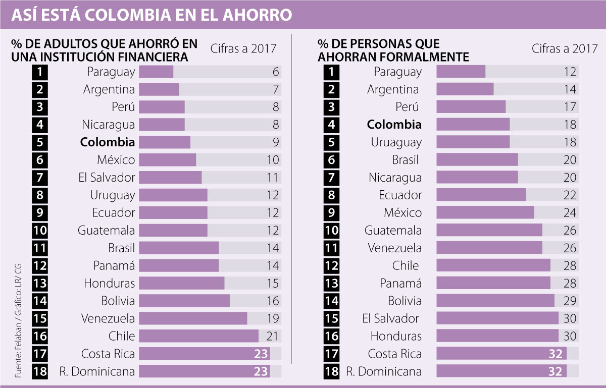 El dinero bajo el colchón o las cadenas siguen teniendo una participación importante del mercado del ahorro colombiano. Así lo dio a conocer la Federación Latinoamericana de Bancos (Felaban) en el IV Informe de Inclusión Financiera de 2018 en el que explican que en la región, solo 24% de los habitantes ahorra en entidades financieras y en total 33% hace un ejercicio de ahorro (con otros mecanismos), lo que es sustancialmente menor que el 71% de los países de altos ingresos.