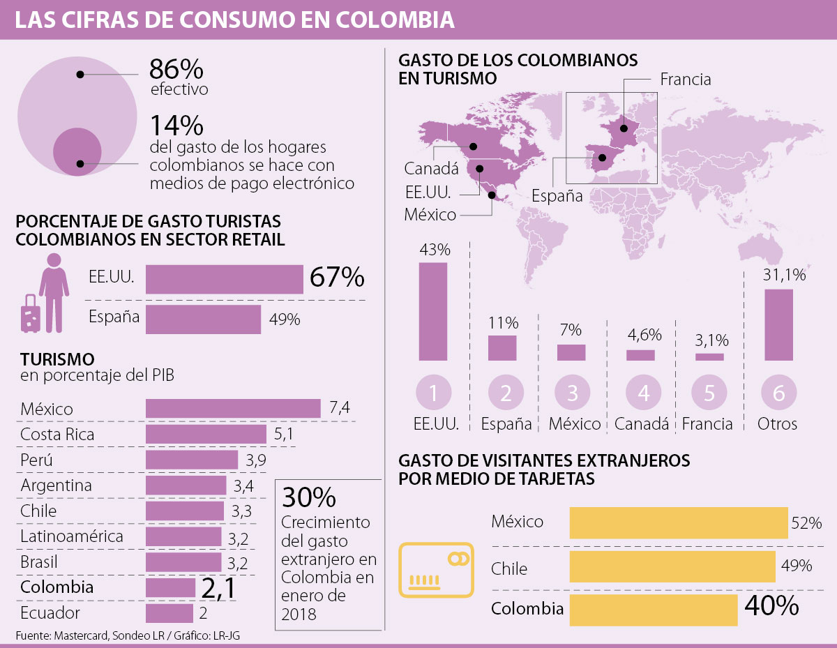 El incremento en el turismo ha mejorado los ingresos por pagos electrónicos en el país. En enero de 2018 la cifra de gasto de extranjeros en Colombia creció cerca de 30% comparando frente a 2017.