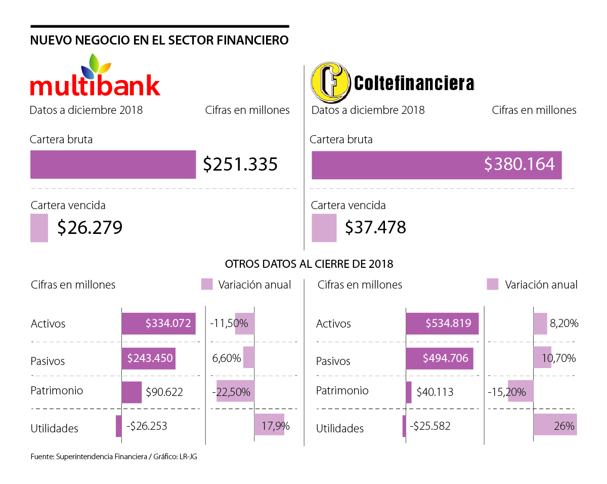 El año anterior fue de recuperación para las compañías de financiamiento. De acuerdo con los resultados del sistema financiero del año pasado, publicados por la Superintendencia Financiera el ahora Banco Serfinansa y Tuya fueron las firmas que registraron las mayores ganancias. La primera obtuvo $25.347,2 millones, mientras que la segunda llegó a $21.712,5 millones. Por su parte, Coltefinanciera alcanzó pérdidas por $25.582 millones, lo que significó un alza de 26% frente a lo reportado un año atrás. El banco con el que hará el negocio, Multibank, también reportó pérdidas en 2018, que llegaron a $26.253 millones.