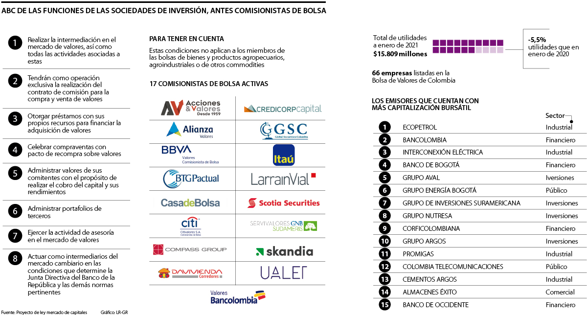 El Ministerio de Hacienda y Crédito Público presentó el proyecto de ley que reforma el sistema de pagos y el mercado de capitales, documento dentro del cual se establece que las actuales comisionistas de Bolsa pasarán a llamarse sociedades de inversión. También se asignan nuevas funciones.