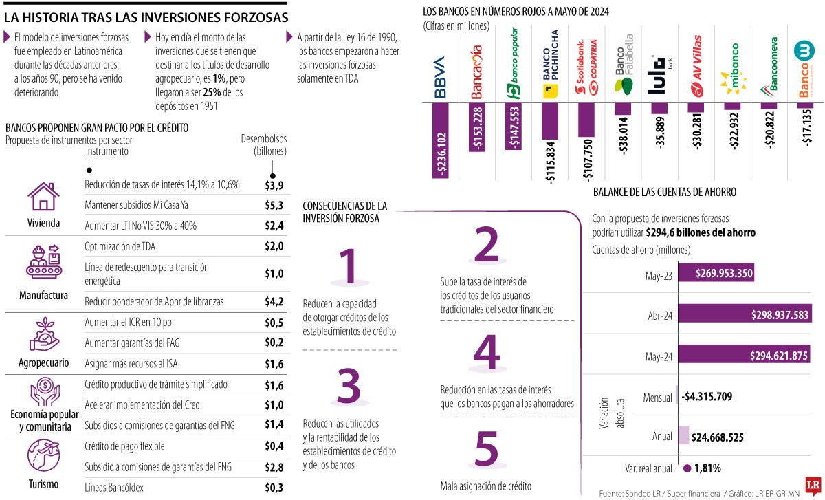 La inversión forzosa trae consigo algunas consecuencias al sistema financiero. Por un lado, reduce la capacidad de las entidades financieras de otorgar créditos, y por otro, pueden subir la tasa de interés de los préstamos de los usuarios tradicionales del sector financiero.