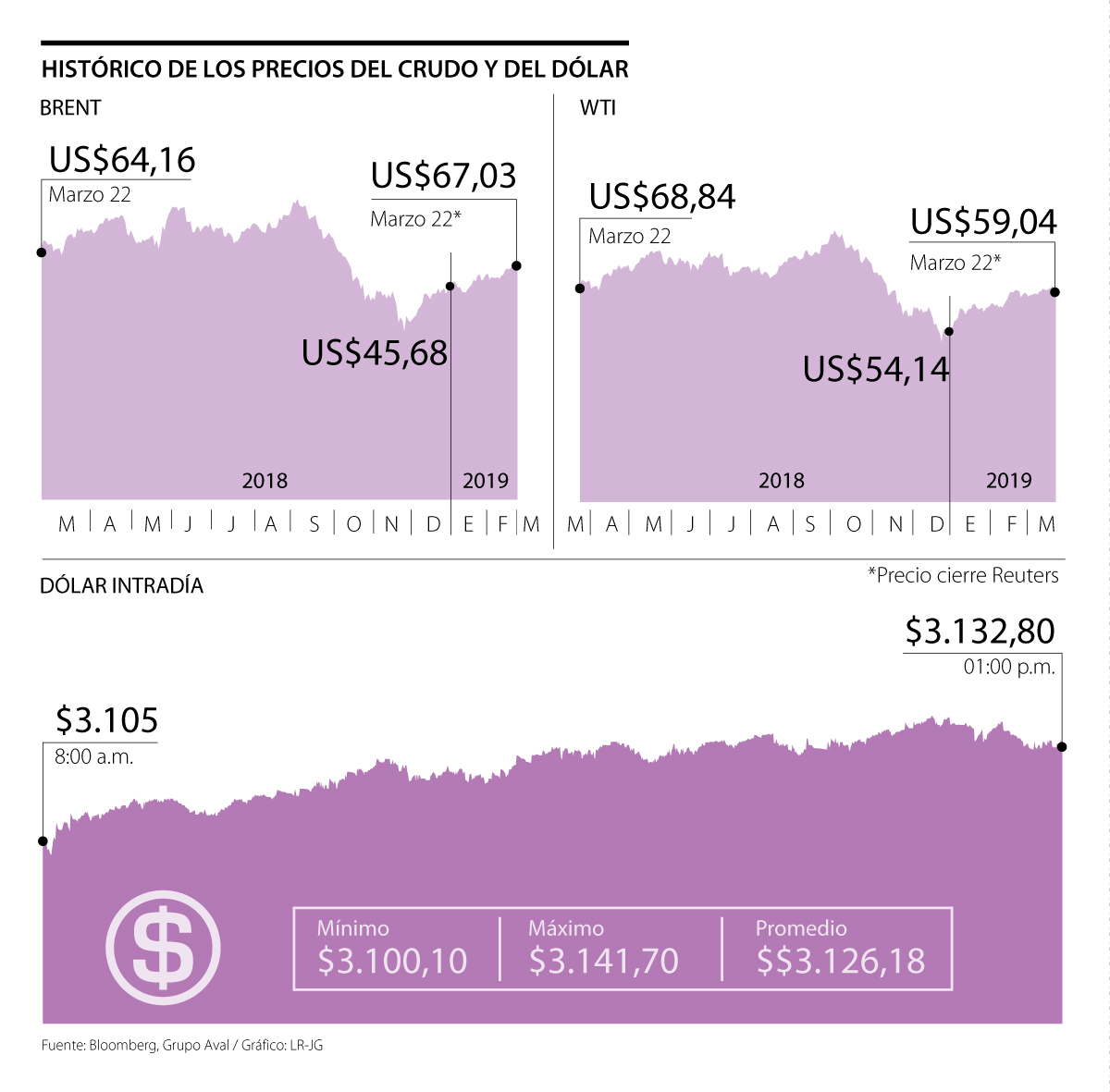 De acuerdo con los precios de cierre reportados por Reuters, la referencia Brent cerró con un precio de US$67,03 por barril, lo que se traduce en una disminución de 83 centavos (-1,22%) desde el último cierre; mientras que el West Texas Intermediate (WTI) de Estados Unidos disminuyó 94 centavos (-1,57%) y se ubicó en US$59,04 el barril frente al cierre anterior.