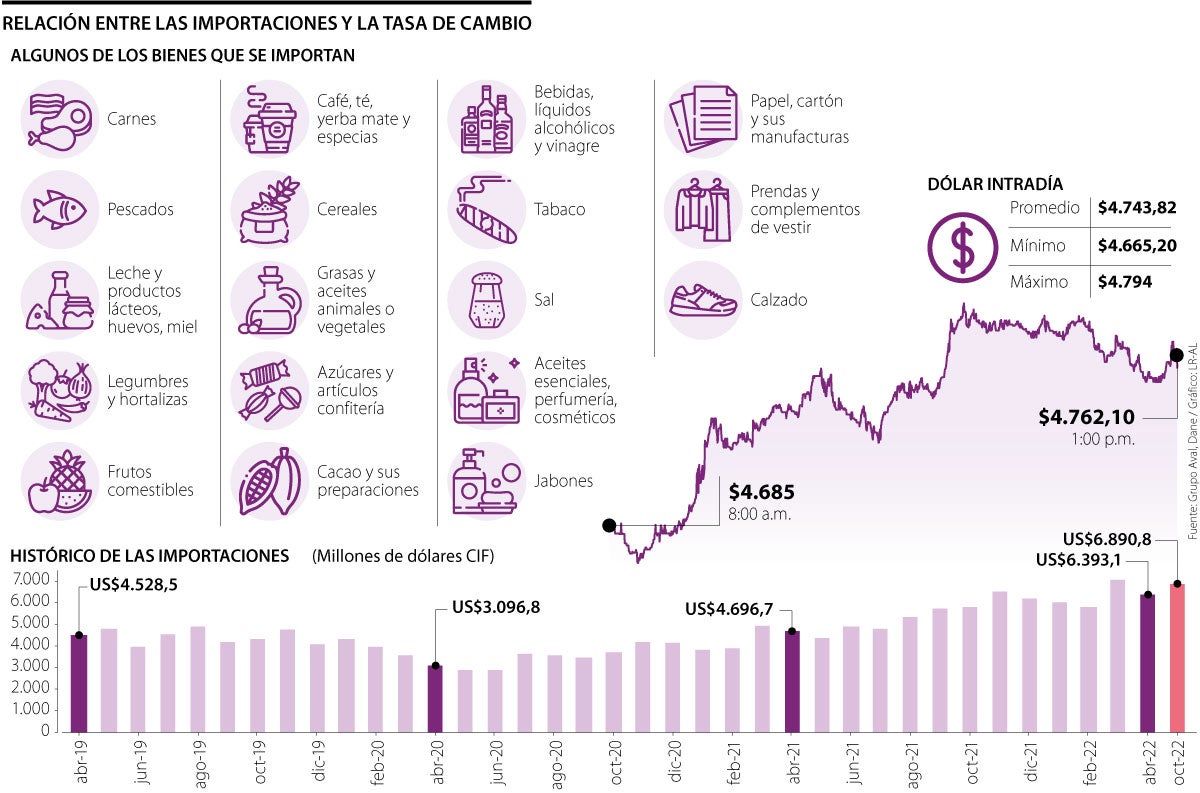 La TRM de hoy es de $4.744,04 y el alza tendrá un efecto en 20% de la canasta básica, importaciones de bienes como carnes y cereales
