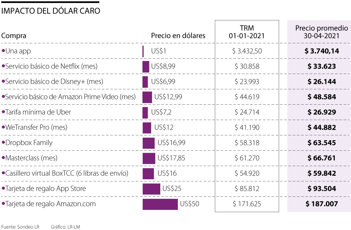 Para evaluar qué tanto cambiaron desde inicios de año las tarifas, LR escogió algunos productos y servicios que los consumidores pagan en dólares.