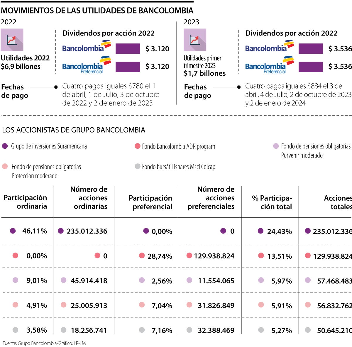 Del total de accionistas mayoritarios, Grupo Sura, brazo clave en el GEA, es el que se lleva la mejor parte entre ganancias del banco