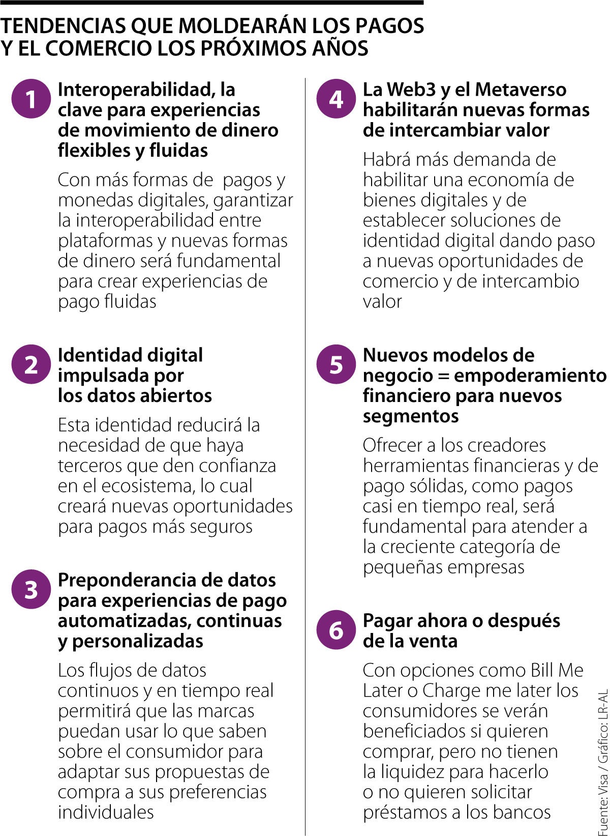 Visa es una de ellas. Tras una investigación dirigida por el Centro de Innovación de Visa en América Latina y el Caribe, se revelaron las cinco tendencias, que, según sus investigaciones, redefinirán el mundo de los pagos y el comercio en 2023 y los próximos cinco a siete años.