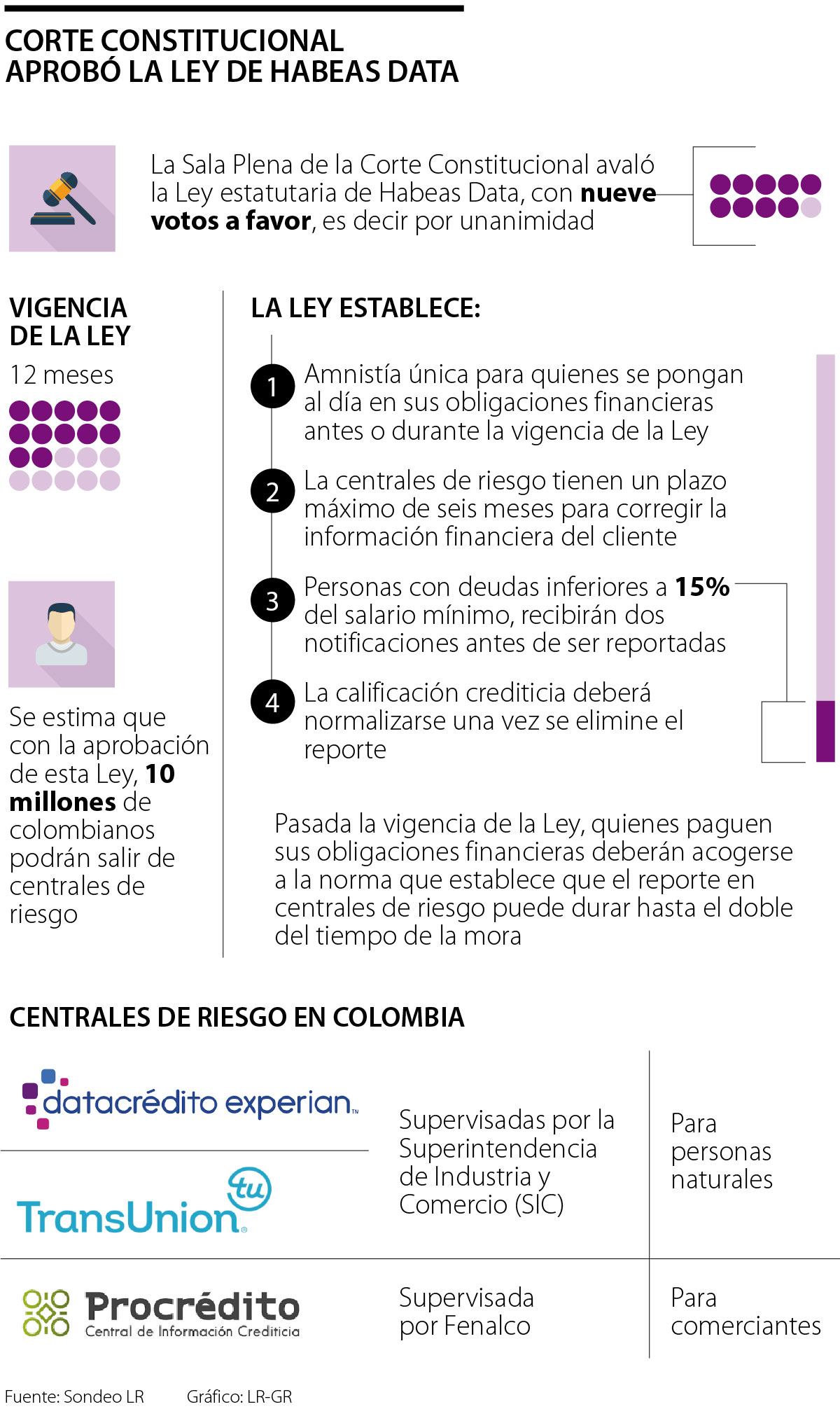 La Corte Constitucional aprobó con nueve votos, es decir por unanimidad, la Ley de Habeas Data , conocida como el ‘borrón y cuenta nueva de las entidades financieras’. La norma fue aprobada en 2020 en el Congreso de la República, pero por tratarse de una reforma a la Ley estatutaria de Habeas Data 1266 de 2008, se exigía una revisión de la Corte para luego pasar a sanción presidencial.