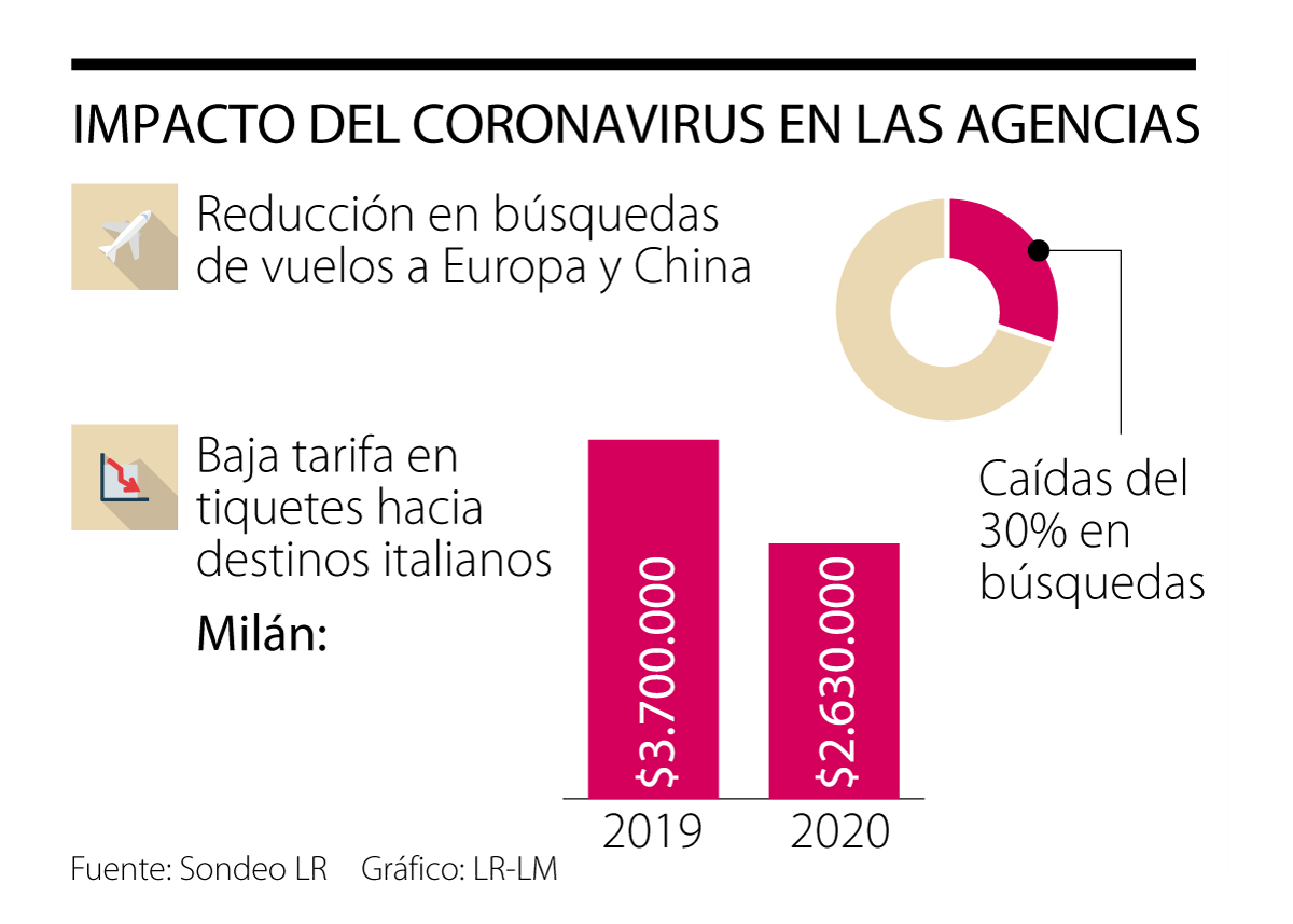 Para no afectar eventos y vacaciones de muchos colombianos, las agencias de viaje están trabajando con hoteles y aerolíneas para realizar cambios en los destinos o aplazamiento de los trayectos. Según Paula Cortés Calle, presidente de la Asociación Colombiana de Agencias de Viajes y Turismo (Anato), si la compra del paquete turístico sobrepasa los cinco días legales para la devolución del dinero, se revisará caso por caso. (JML)