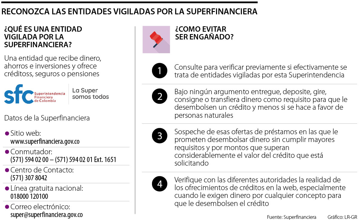 No caer en engaños es muy sencillo. La página web de la SFC tiene una pestaña de ‘entidades vigiladas’, donde podrá encontrar todas las instituciones en las que puede depositar su dinero o solicitar un crédito. Incluso, si tiene dudas sobre una empresa en especial, basta con escribir su nombre en el buscador del sitio web y allí encontrará toda la información necesaria.