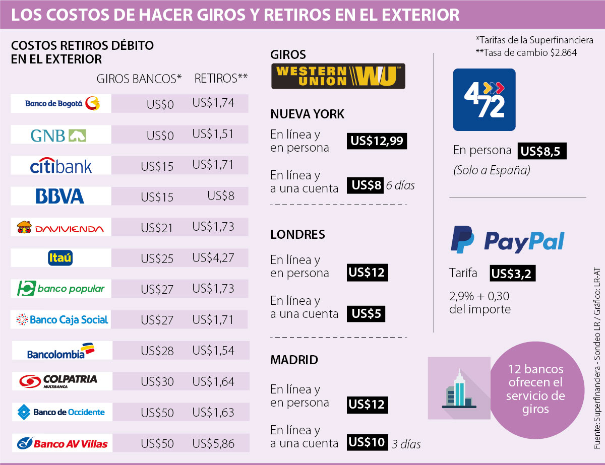 Si necesita retirar o enviar US$100 al exterior no dude en hacerlo a través de su entidad bancaria con la tarjeta débito, pues le puede salir mucho más económico que hacerlo por medio de otras herramientas, como los giros o incluso Paypal.