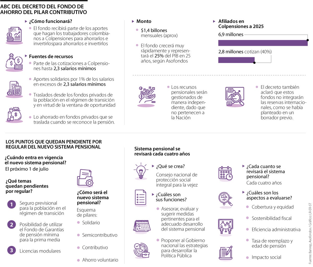 Según la Cartera de Hacienda, el decreto dicta que el Fondo de Ahorro del Pilar Contributivo, Fapc, se constituirá como el mecanismo de ahorro para respaldar el pago de las obligaciones prestacionales del sistema pensional en su totalidad, específicamente en lo relacionado con el componente de prima media del pilar contributivo y del pilar semicontributivo.