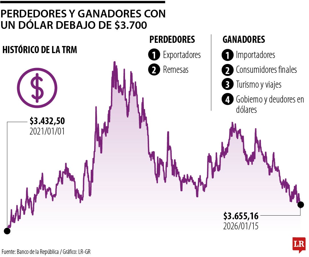 Conozca los ganadores y perdedores con el precio del dólar por debajo de $3.700