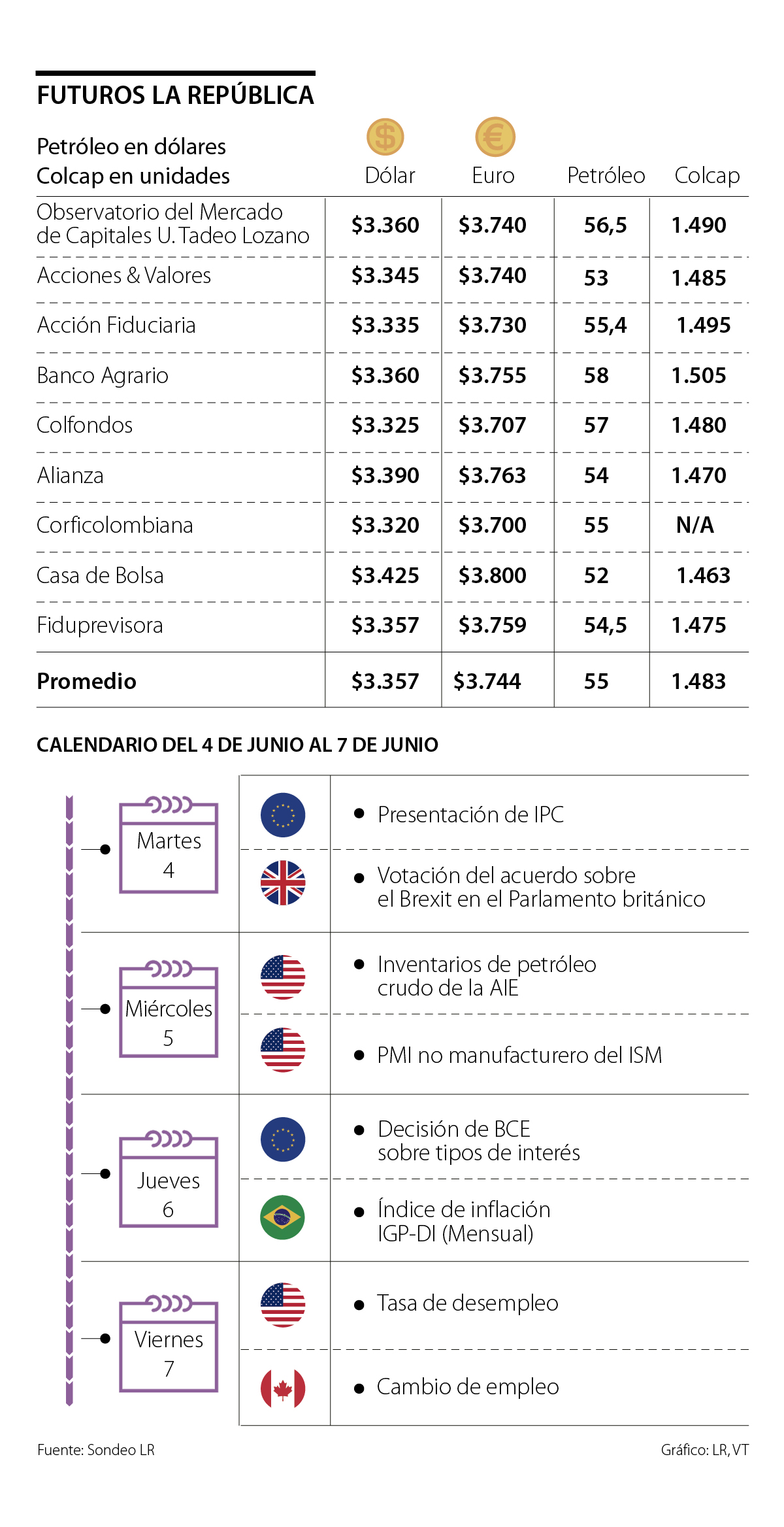 Felipe Espitia, analista macroeconómico de Alianza Valores, resaltó que junio será un mes que traerá “mucha información”, situación que no será diferente en la primera semana, a la espera de una retaliación de China sobre Estados Unidos y de la partida de Theresa May de las riendas del Reino Unido, tras sus fallidos intentos por abordar el Brexit.
