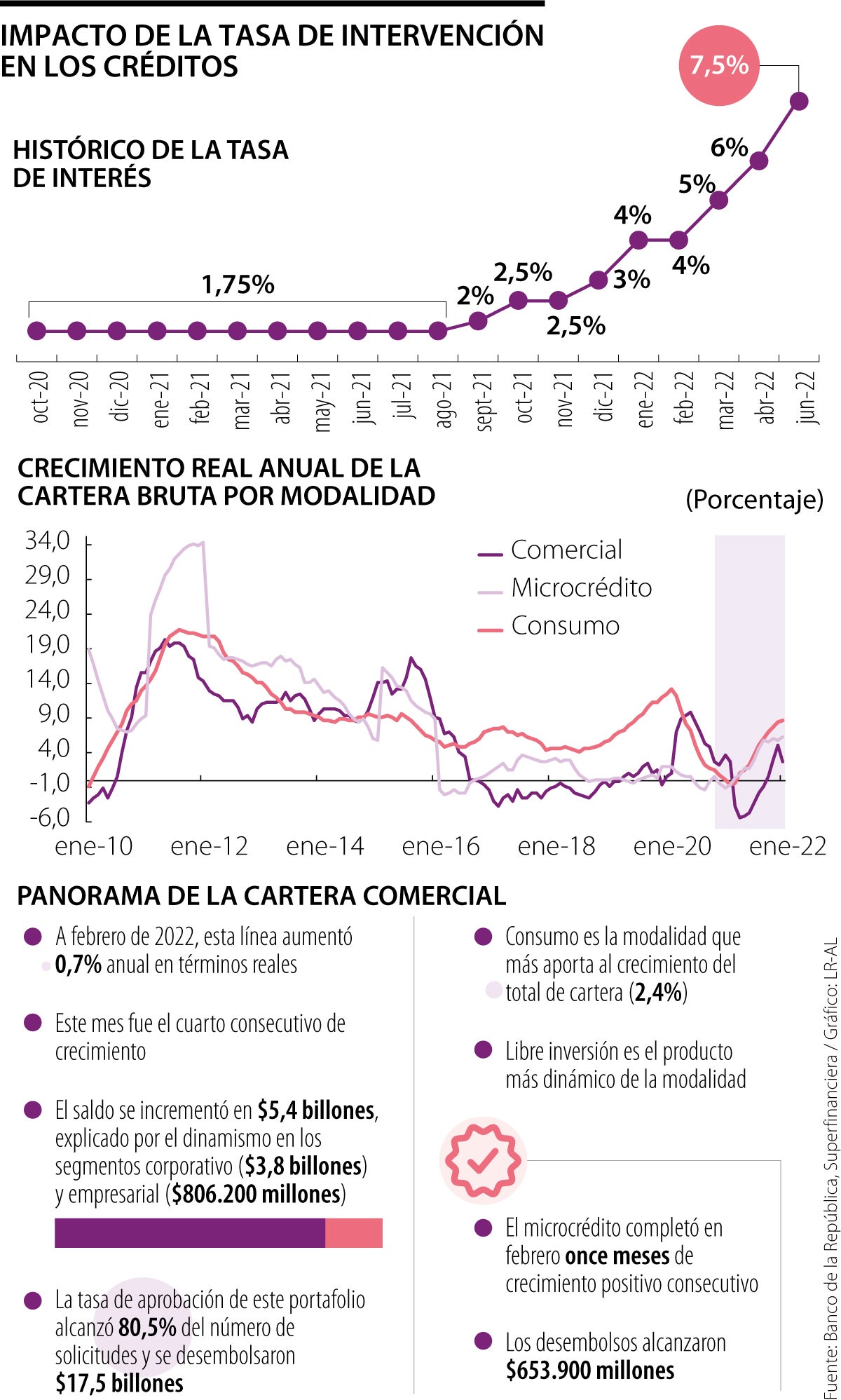 En ese sentido, el gremio asegura que las líneas más impactadas son las que están a corto plazo y los créditos que se encuentran a tasa variable, principalmente en las carteras comerciales y de consumo.