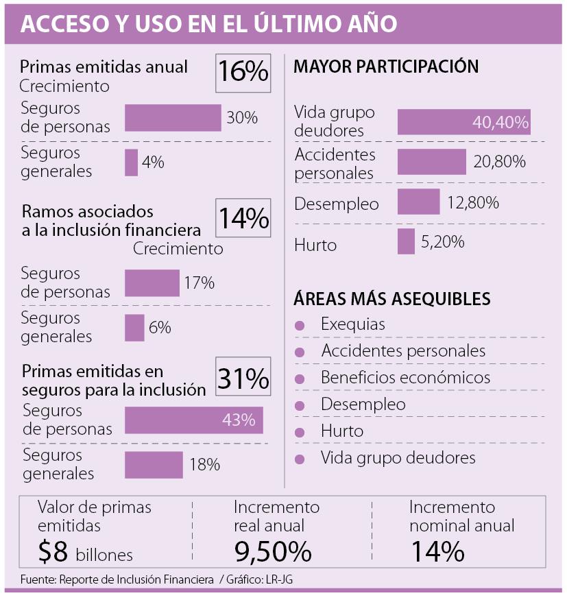 Otro factor que incide en su acceso y uso, según el informe, es que el 29,7% de la prima mensual a pagar por cada asegurado fue inferior a $20.000; lo que incide en el posicionamiento de productos como los de exequias o beneficios económicos, entre otras alternativas.